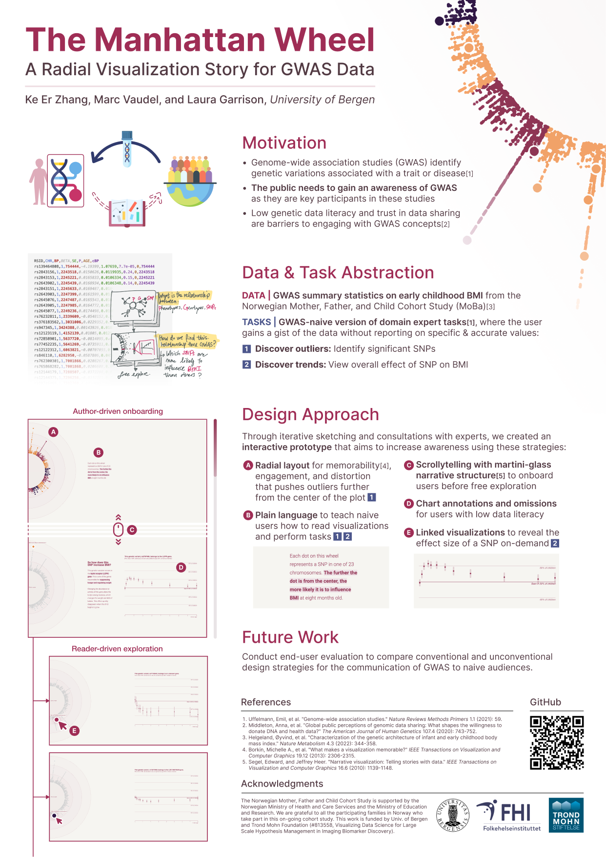@misc{zhang2024ManhattanWheel,booktitle={Eurographics Workshop on Visual Computing for Biology and Medicine (Posters)},title={{The Manhattan Wheel: A radial visualization story for genome-wide association study data}},author={Zhang, Ke Er and Vaudel, Marc and Garrison, Laura},year={2024},publisher={The Eurographics Association},}